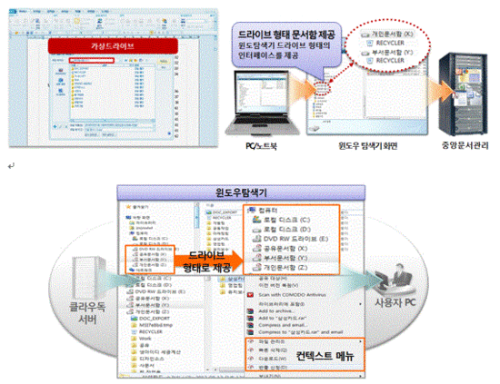 PC의 개발 툴 에서 생성된 소스코드의 저장을 금지함2. 중앙의 문서함을 윈도탐색기에서 드라이브 형태로 로컬디스크처럼 사용 가능하도록 제공