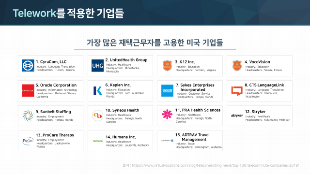 때문에 Telework를 적용한 기업도 나날이 증가하고 있습니다.