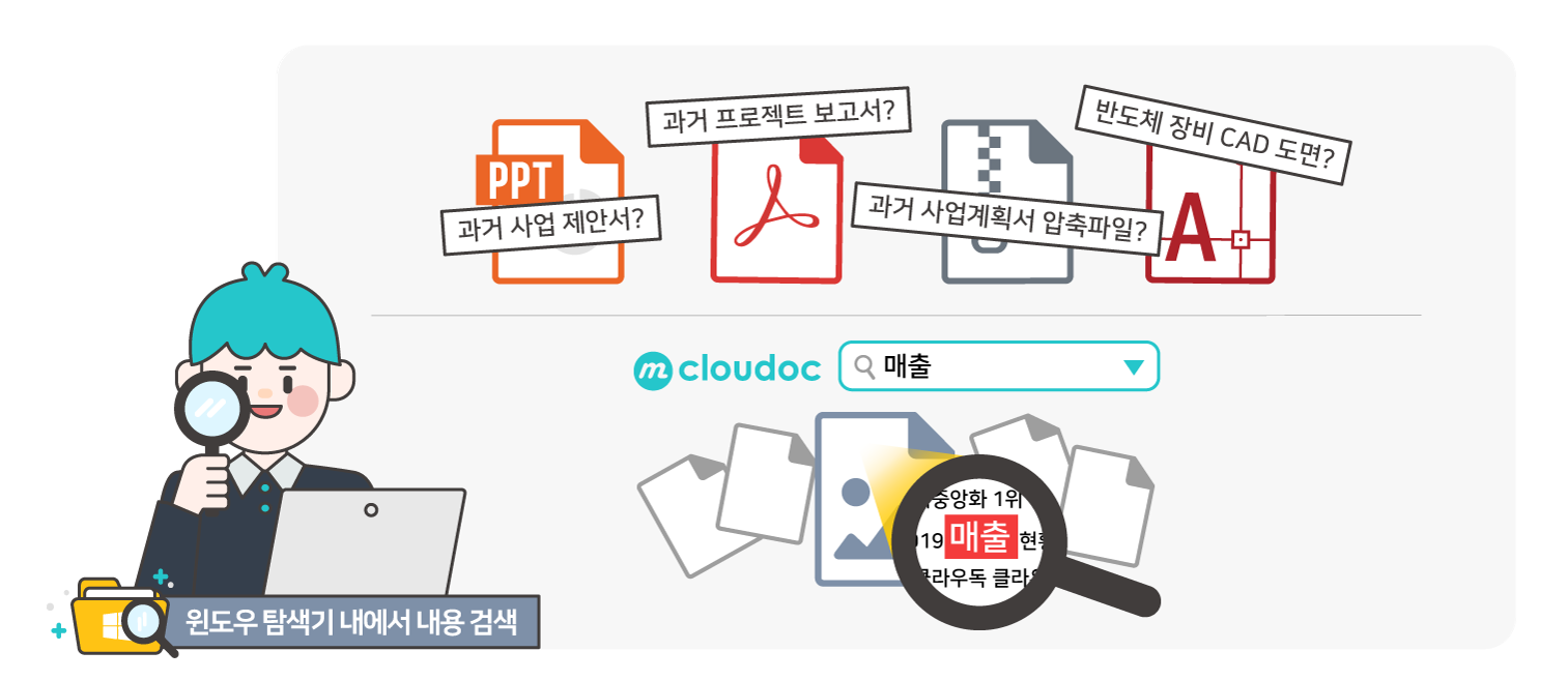 뿐만아니라, mcloudoc의 내용 검색' 기능은 문서의 활용과 문서의 공유를 더욱 이롭게 합니다.
