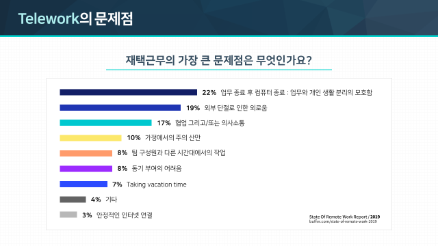 하지만 이러한 많은 장점이 있음에도 Telework를 쉽게 적용할 수 없는 다양한 문제점도 존재합니다.