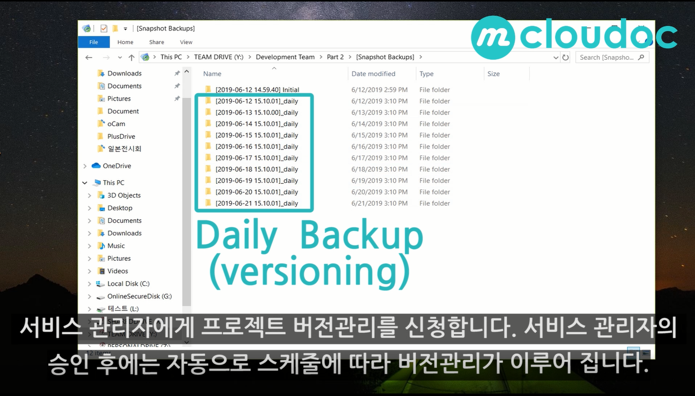 특정 시점의 폴더 구조 전체를 백업하여 유사시에 정상적으로 프로젝트를 복원할 수 있습니다.