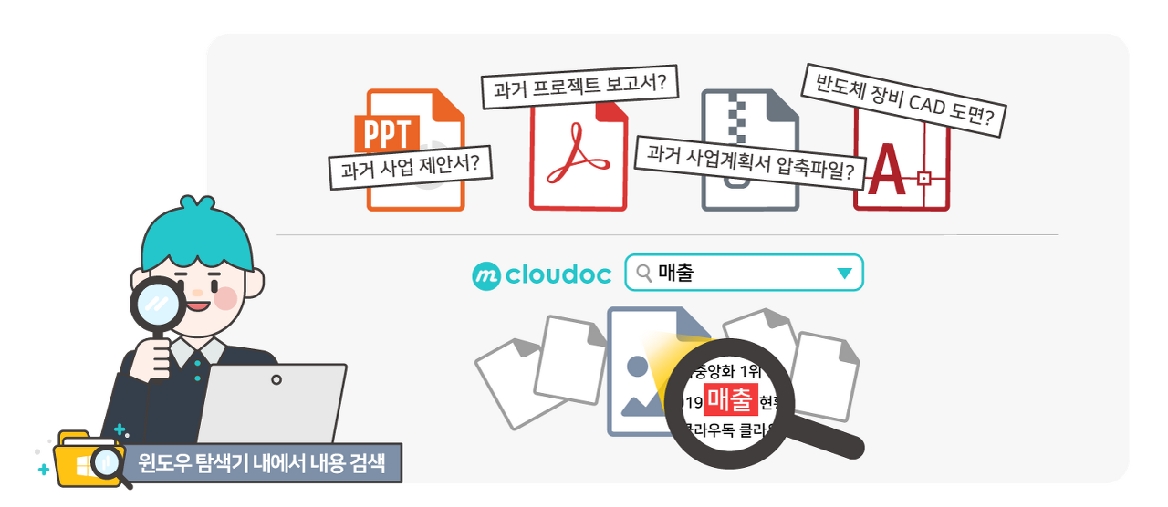 뿐만아니라, mcloudoc의 내용 검색' 기능은 문서의 활용과 문서의 공유를 더욱 이롭게 합니다.
