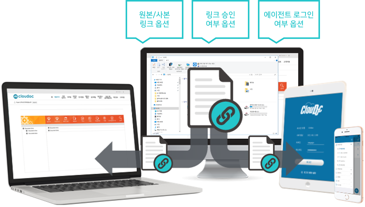 '문서링크' 기능은 직원 간에 협력사와의 문서 공유시에 문서 공유를 지원하고,