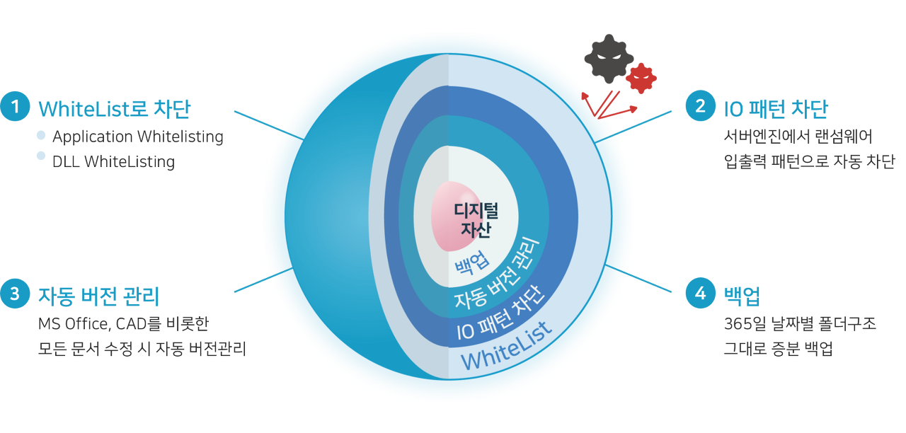 최근 나날이 지능화되는 랜섬웨어에 4단계 대응 방법을 통해 확실하고 지능적인 랜섬웨어 차단이 가능하고,