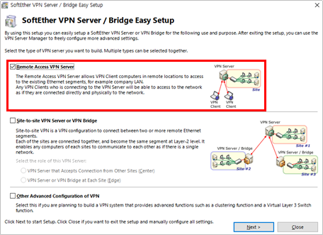(* 설치 서버 단독 운영하므로 Site-to-site VPN Server or VPN Bridge는 체크하지 않습니다.)