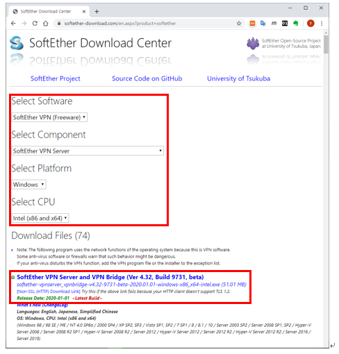 Select Software SoftEther VPN (Freeware) Select Component SoftEther VPN Bridge SoftEther VPN Client SoftEther VPN Command-Line Admin Utility (vpncmd) SoftEther VPN Server SoftEther VPN Server Manager for Mac OS X SoftEther VPN Server Manager for Window