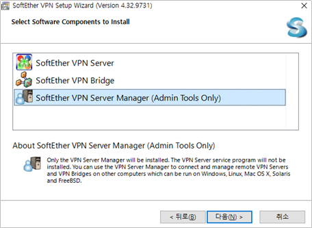 설치할 소프트웨어 선택창이 나오면 ‘SoftEther VPN Server Manager’를 선택합니다.