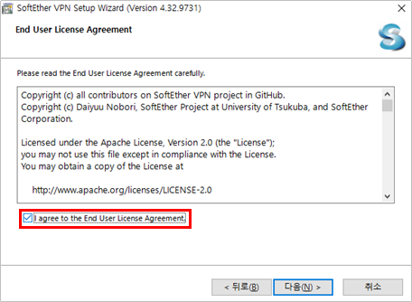 4. 라이선스 동의 체크 후 계속 [다음(N)] 버튼을 클릭하여 설치를 완료합니다.