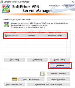4) 생성된 ‘VPN SERVER’를 더블 클릭하거나 선택한 후 [Connect] 버튼을 클릭해 연결합니다.