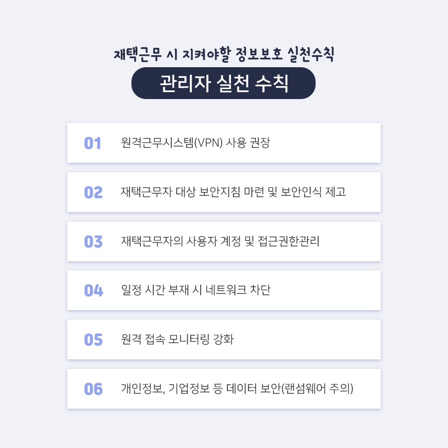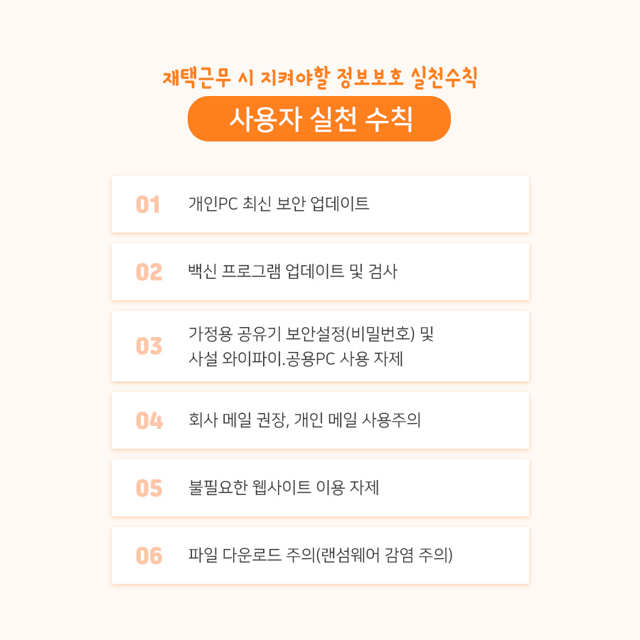 '재택·원격 근무 시 지켜야 할 정보보호 실전수칙 6가지'에 대해서 안내드리겠습니다!