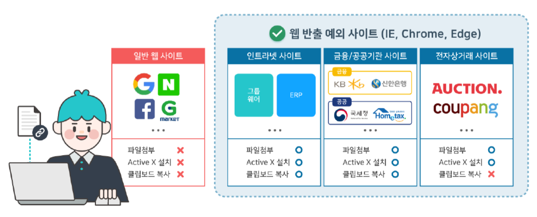 웹 반출 예외 정책을 통해 일반적인 웹사이트에 대해서