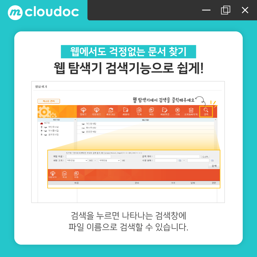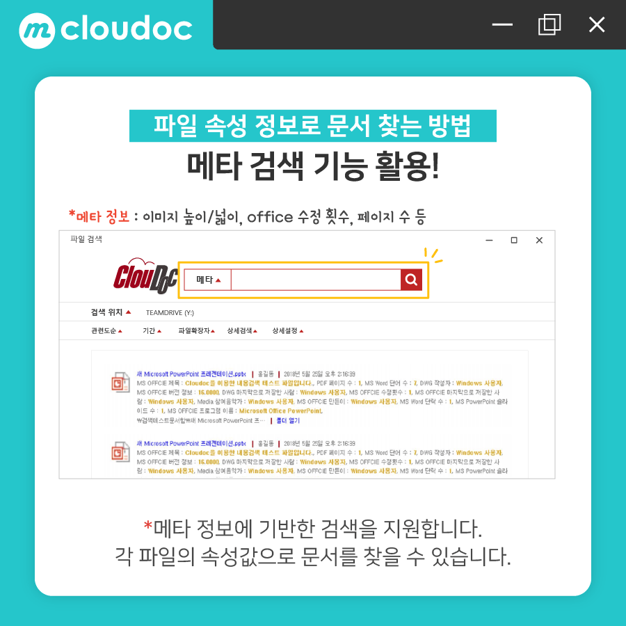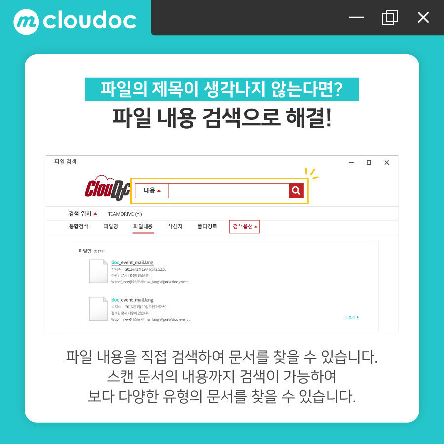 파일명은 기본이고 파일 내용, 속성까지 검색할 수 있는 엠클라우독으로 해결하세요!!
