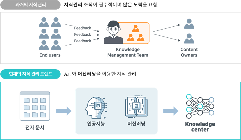 인공지능 지식 관리 솔루션은 사내에 지식 관리를 위한 별도의 인력이나 조직을 편성하지 않아도