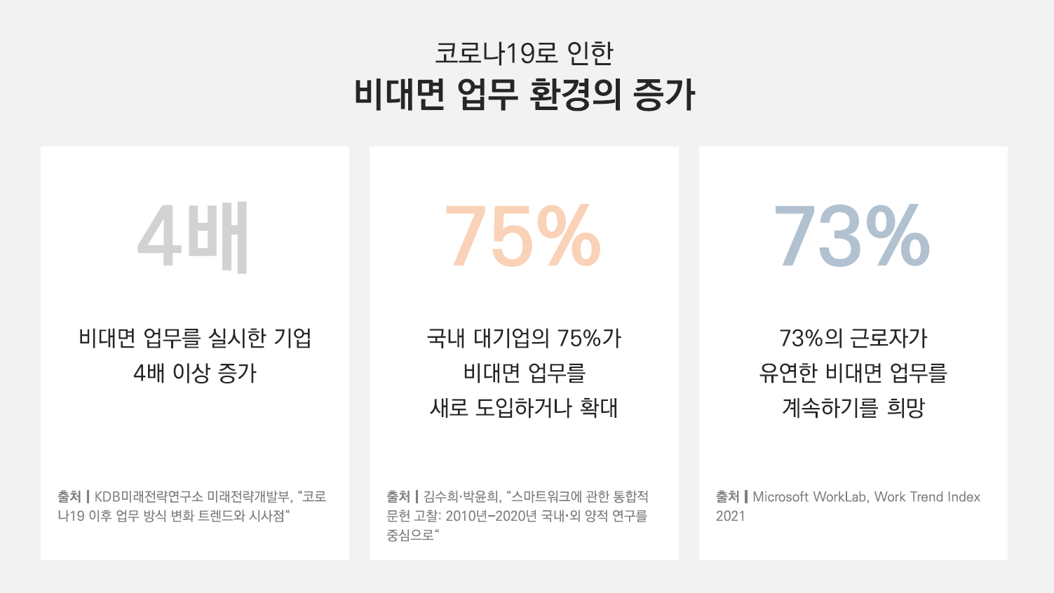 코로나19 발발 이후 비대면 업무는 지속 증가하고 있습니다.