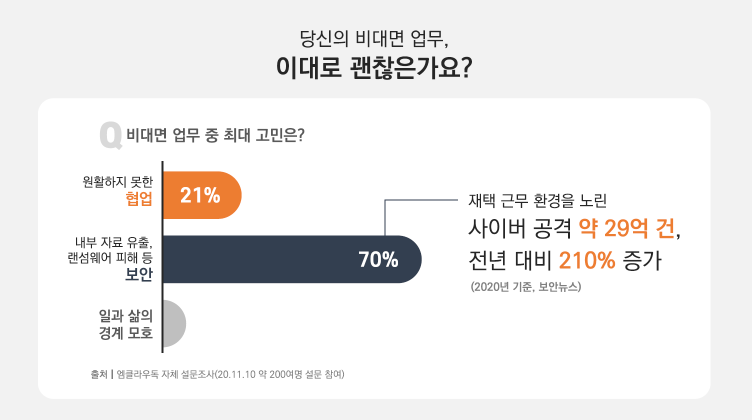 지난 11월, 당사는 비대면 업무 고민에 관련한 설문조사를 자체적으로 실시하였습니다.