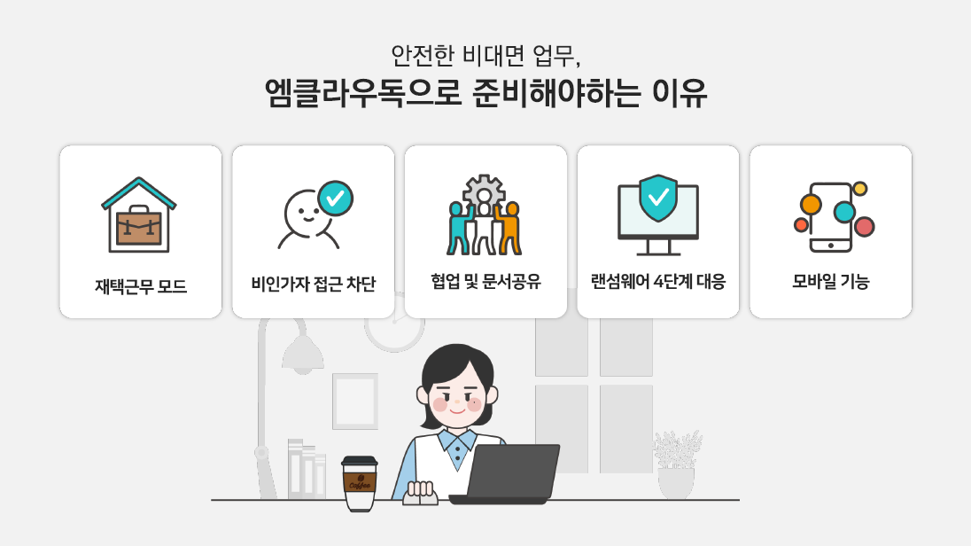 비대면 업무 환경에서의 고민을 엠클라우독이 한 번에 해결합니다.