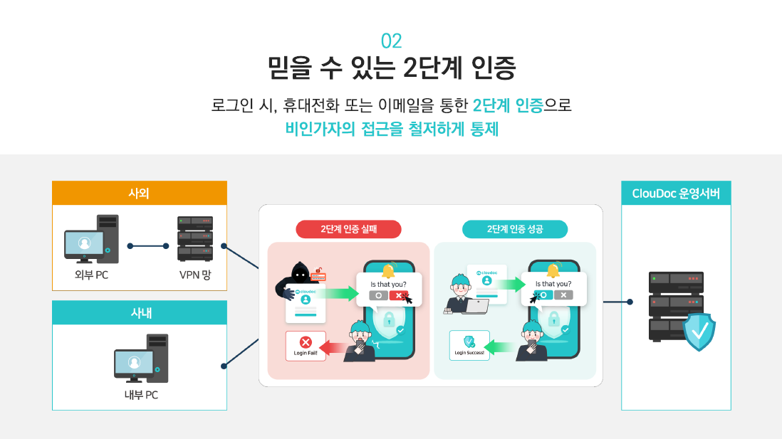 철저한 접속 관리까지 가능한 2단계 인증 기능을 제공합니다.