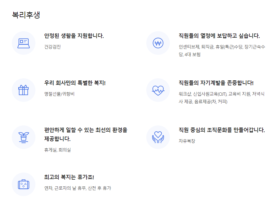 이외 명절선물 및 귀향비 지원, 생일선물 지원, 교육비 지원, 각종 경조사 지원 등