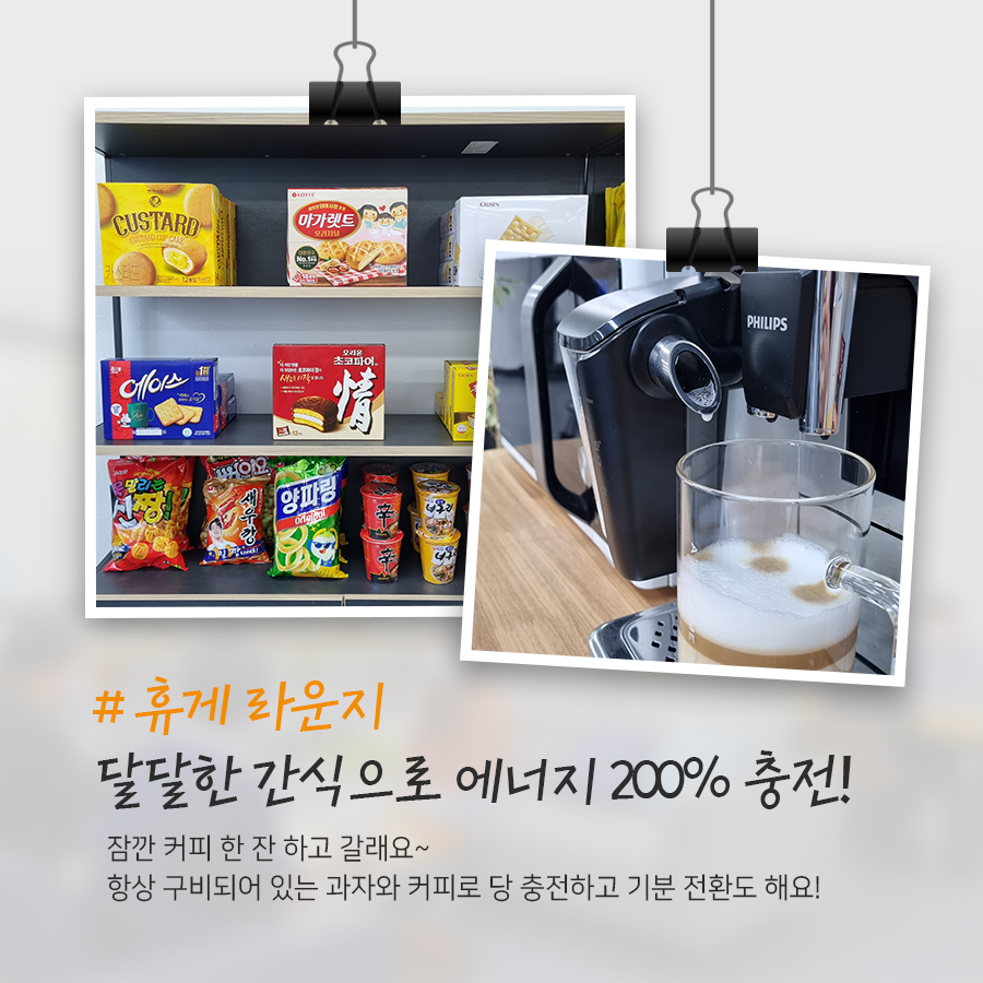 안락하게 쉴 수 있는 휴식공간은 물론이고, 달달한 간식까지 아낌없이!
