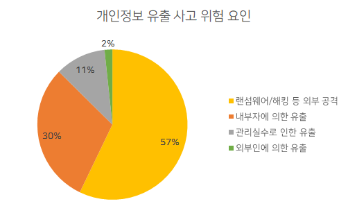 1위. 랜섬웨어/해킹 등 외부 공격 57%
