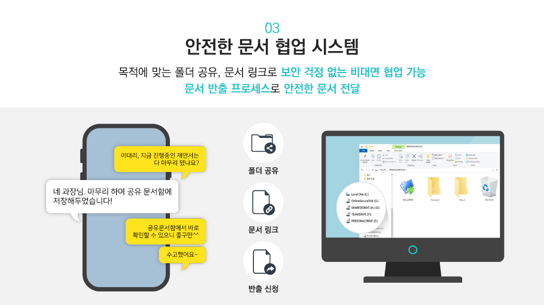 화면 캡쳐 금지, 문서 반출과 같은 강력한 보안 정책은 물론이고