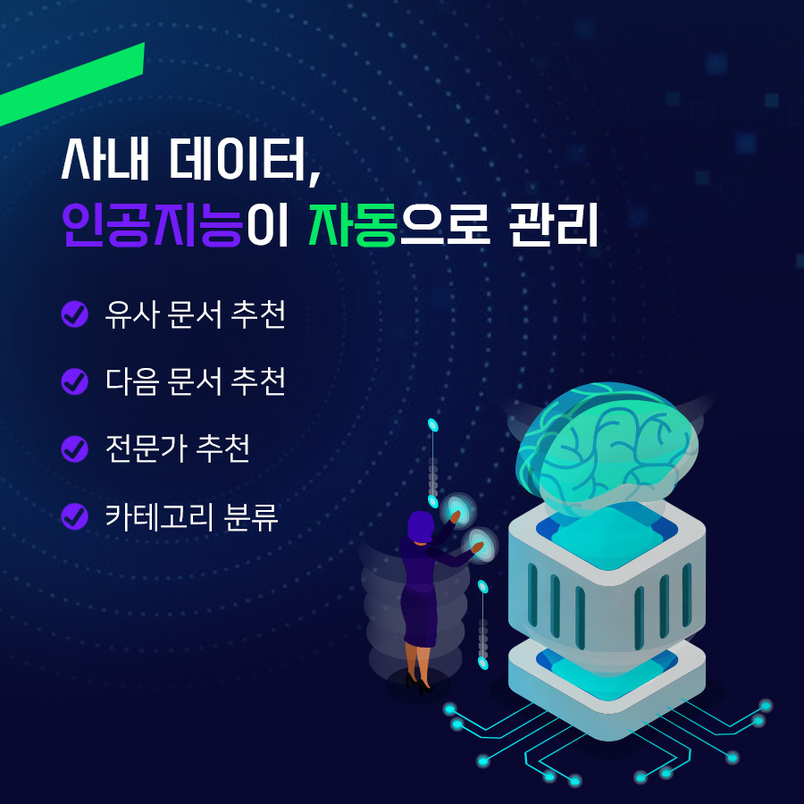 인공지능이 알아서 지식 관리를 진행하기 때문에 효율적인 업무를 도모할 수 있습니다.