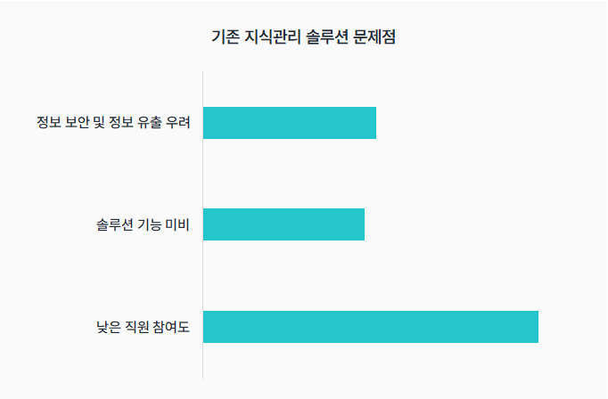 기존 지식관리 솔루션의 가장 큰 문제점은 '낮은 직원 참여도'로 집계 되었는데요.
