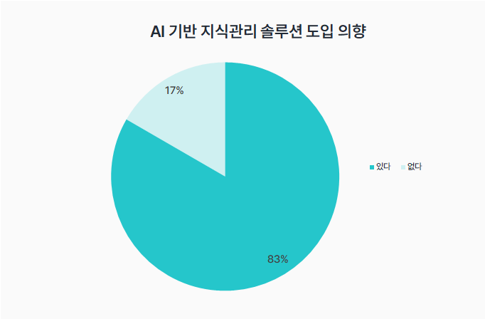 응답자의 83%가 인공지능 지식관리 솔루션에 대한 도입 의향을 밝히며