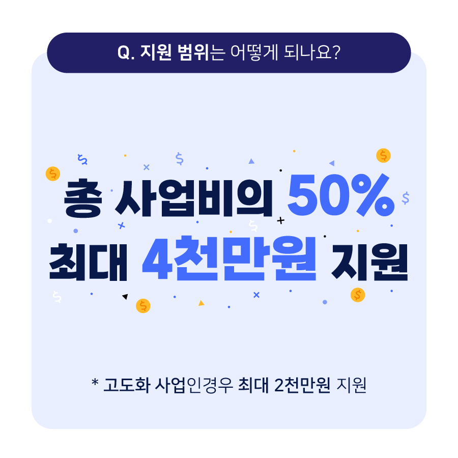 ✔ 지원 한도 : 총 사업비의 50% (최대 4천만원)