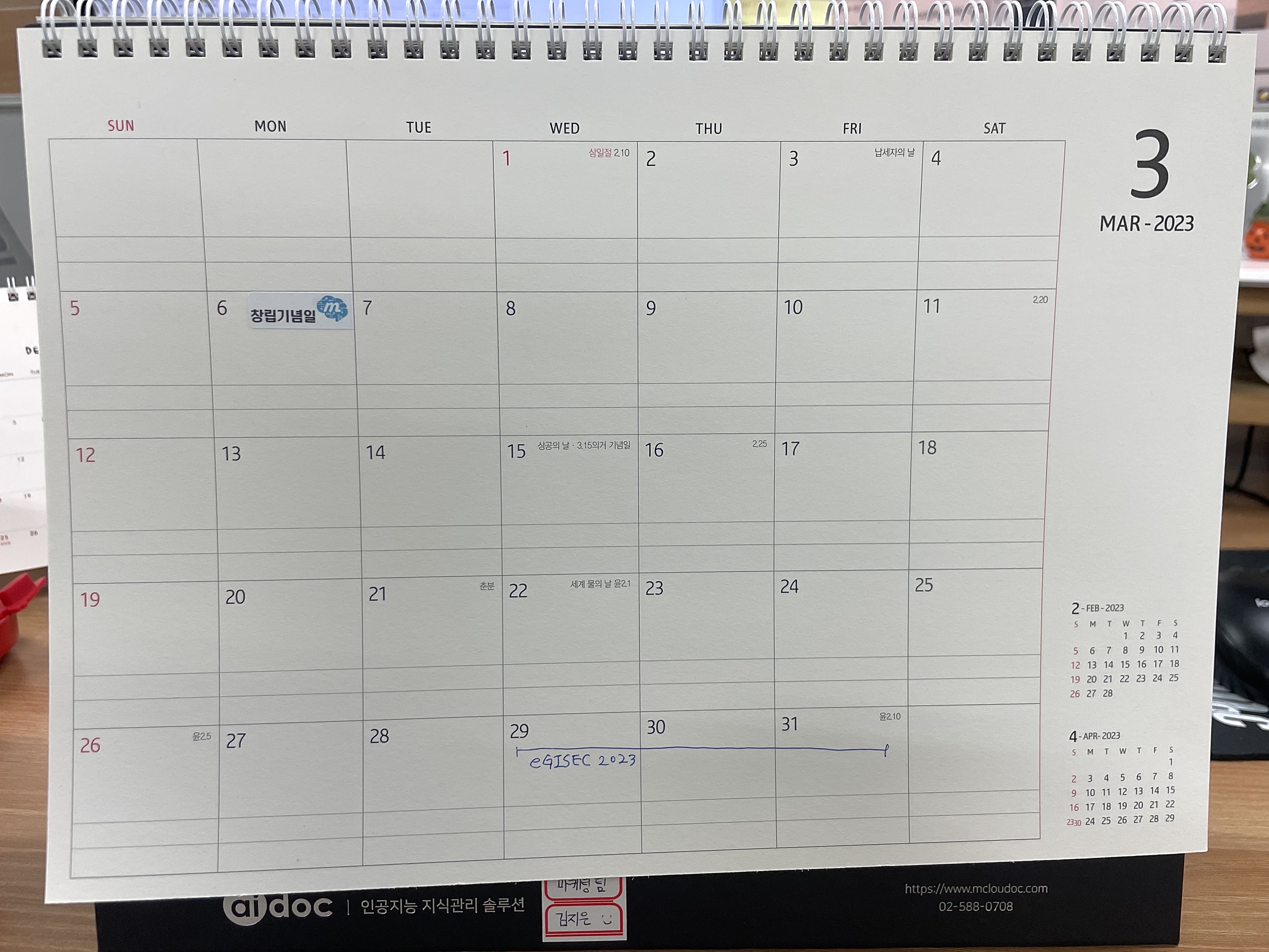 3월달엔 엠클라우독 창립기념일이 표기되어있어요~