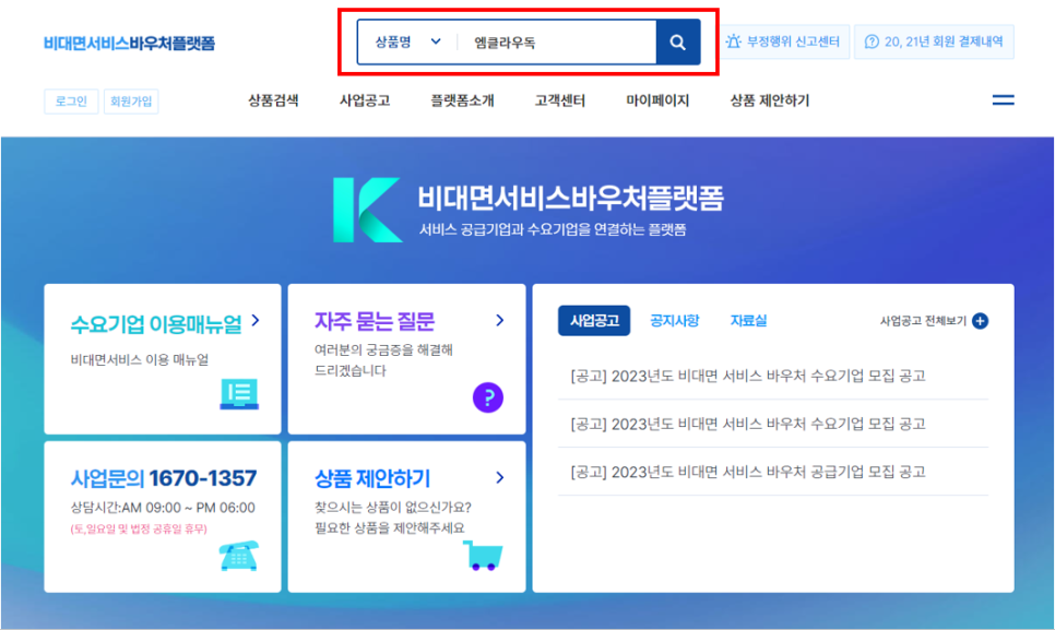 1. 비대면 서비스 바우처 플랫폼에 접속한다