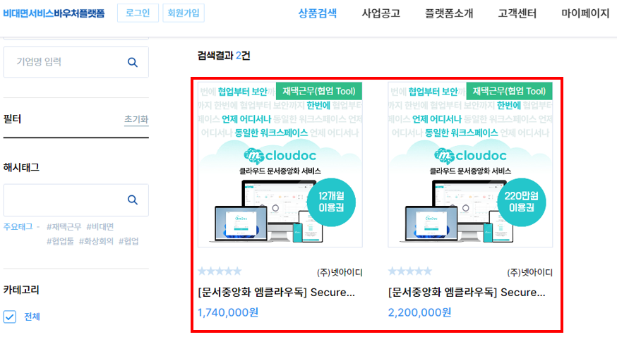 | 엠클라우독 비대면 서비스 바우처 제공 분야 - 재택근무
