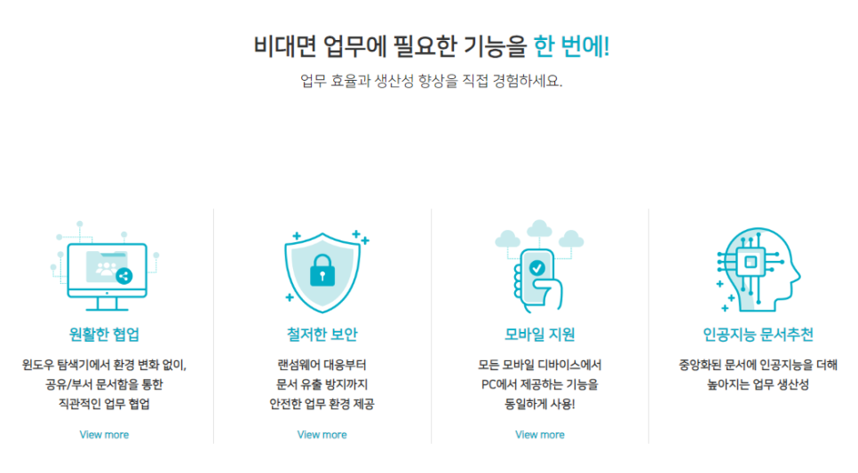 기업 내임‧직원의 재택근무 등에서 활용이 가능한 업무파일 및 화면 공유 등 온라인 협업 클라우드 서비스