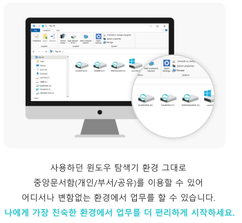 윈도우 탐색기에서 변화 없이 구현된 UI를 제공합니다.