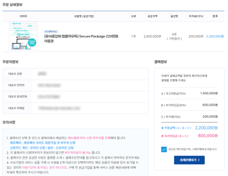 5. 정부 지원금 70% 절감된 가격으로 결제를 진행한다