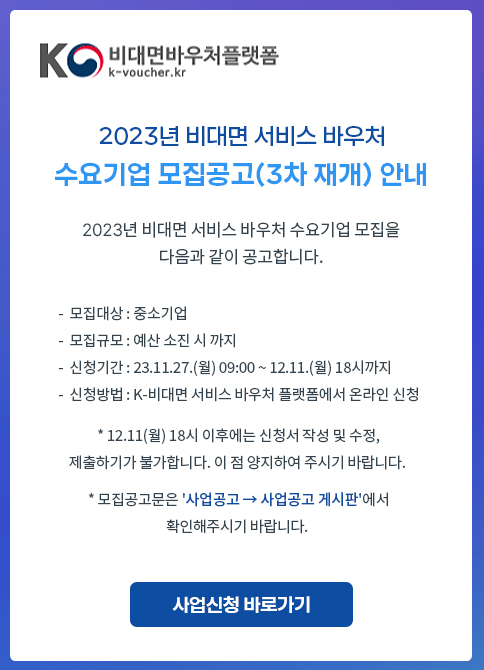 2023년도 비대면 서비스 바우처 수요기업 모집 3차 재개 공고 中