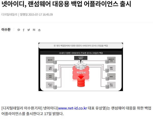 2015년에는 랜섬웨어 대응용 백업 어플라이언스가 출시되었습니다.