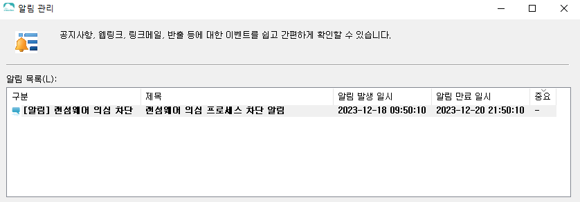 의심 가는 사용자를 차단하고 해당 내용을 이메일로 본인과 상급자 및 관리자에게 통보하는 기능입니다.