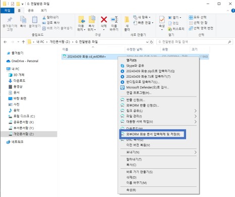 1️⃣ 외부 DRM을 통해 반출할 파일 또는 폴더를 선택하고