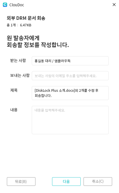또한 반출 단계에서 편집을 허용하지 않은 외부 DRM 문서는 편집/회송 기능을 사용할 수 없습니다!