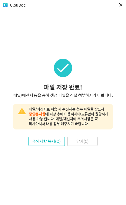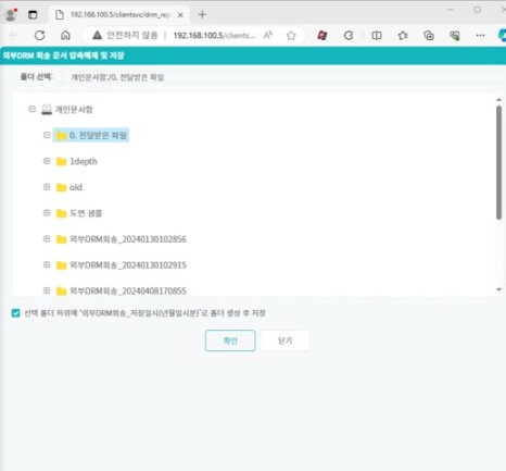 이때 회송 파일은 문서중앙화 중앙문서함에 저장해야만 압축 해제 및 복호화 작업이 진행됩니다.