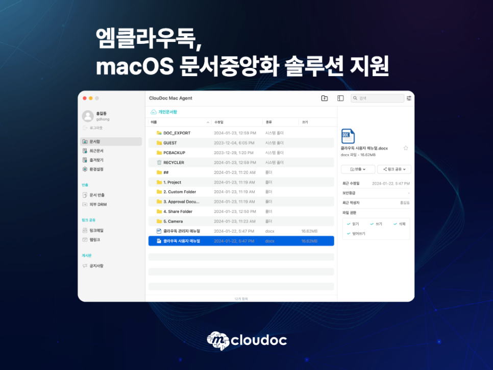엠클라우독, 맥OS 문서중앙화 솔루션 지원 개시···사내 보안 취약점 최소화 - 아이티데일리