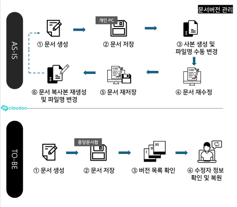 문서중앙화 솔루션 사용 환경에서는 중앙문서함에서 문서를 저장하는 것만으로 자동 버전 관리가 진행됩니다!