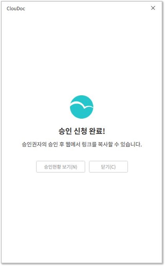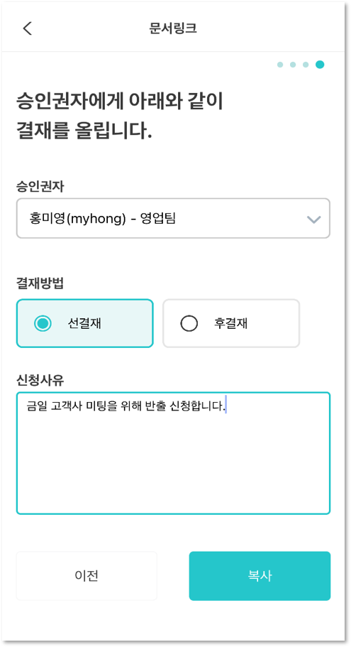 4. 링크 복사: 승인 처리 후 생성된 웹링크를 사용자 기기 클립보드 복사