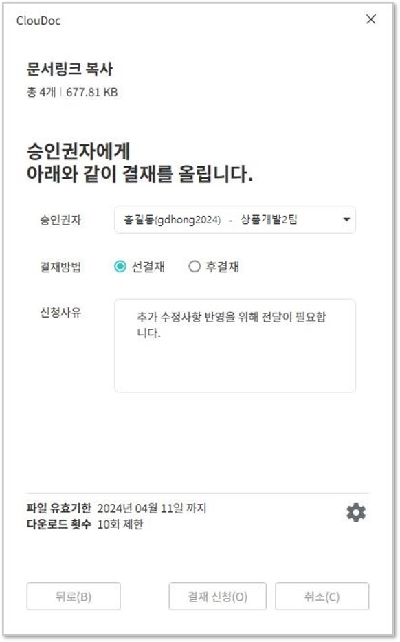 문서중앙화 솔루션 링크 공유 기능 중 하나입니다.