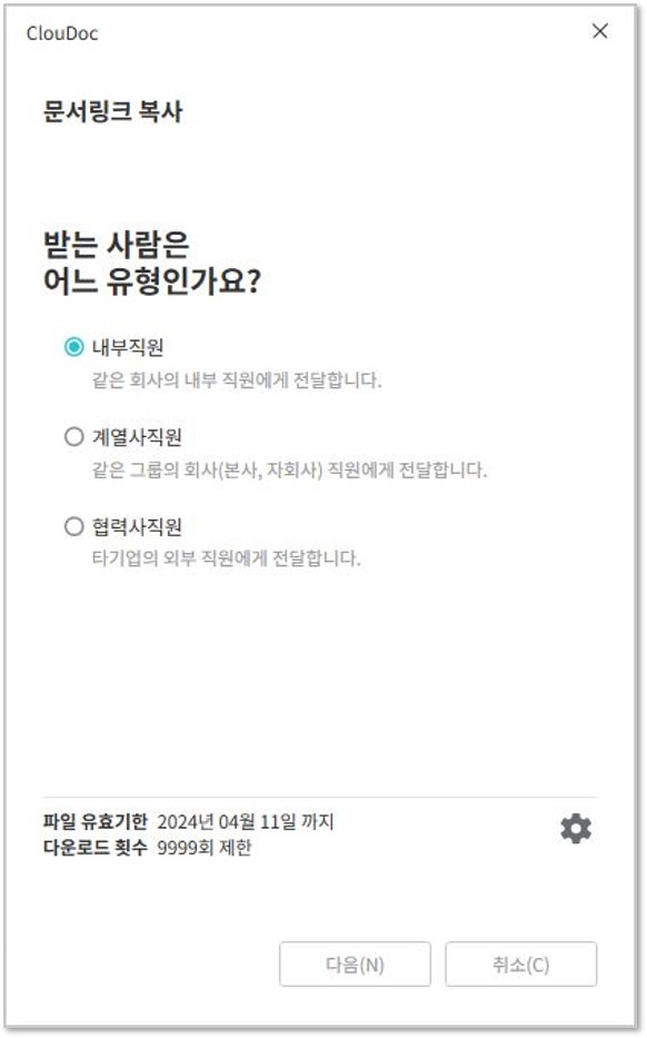 링크 공유는 사내 사용자는 물론 계열사와 협력사 등 외부 수신자에게
