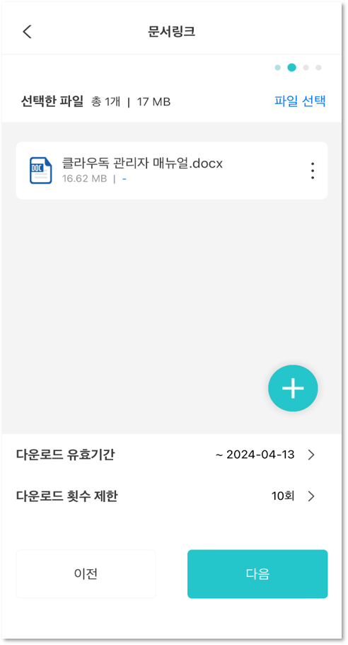 4. 다운로드 설정: 다운로드 유효기한과 다운로드 최대 횟수를 설정할 수 있습니다.