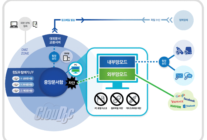 특히, 최근에는 클라우독에 자체 개발한 망분리 기능인 네트워크락 모듈을 탑재해서 기업 고객을 중심
